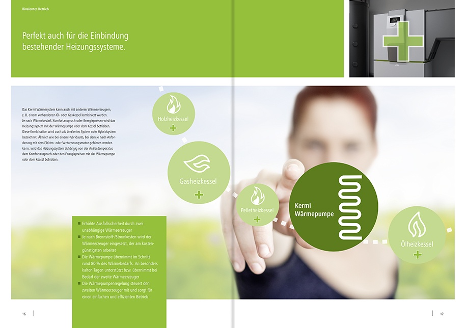 Wärmepumpen sind schon seit Jahrzehnten auf dem Markt. Trotzdem umgibt sie immer noch ein gewisser Mythos von komplizierter Technik. Mit dieser Broschüre bauen wir die Distanz zum Endkunden ab, indem wir die technischen Vorgänge in klare Vorteile übersetzen. So wird Heizung und Warmwasserbereitung vor allem zu einer Sache des guten Gefühls und nur in zweiter Linie zu einer Frage der Technik.