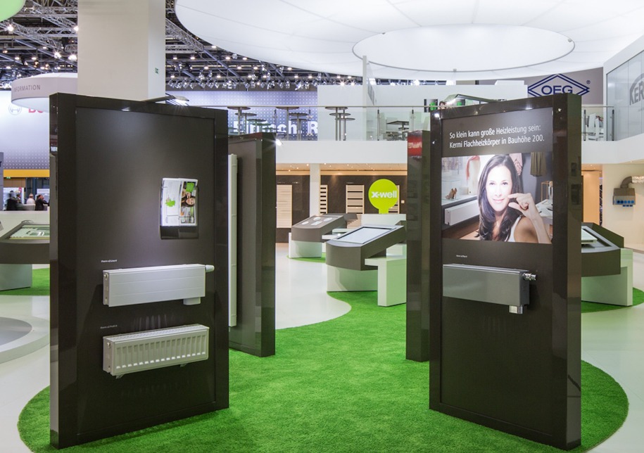 Messeauftritte sind vor allem für das Fachpublikum eine unverzichtbare Gelegenheit, sich einen Überblick über das aktuelle Branchengeschehen zu verschaffen. Kermi informiert seine Fachhandelskunden vor den wichtigen Messen deshalb mit einem speziellen Neu heitenfolder. Auf einen Blick sehen die Empfänger, was sie bei ihrem Messebesuch auf keinen Fall verpassen dürfen.